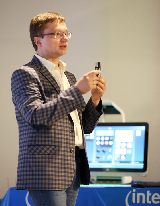 Он сделал акцент на том, что компания сосредоточена не только на выпуске новых процессоров, но и на развитии новых возможностей взаимодействия человека с вычислительной техникой. Абсолютно изменить наш опыт общения с компьютерами обещают такие интерфейсы, как Intel Wireless Docking — беспроводная периферия и стыковка, беспроводная зарядка на базе стандарта Rezence, а также технология Real Sense — взаимодействие с устройством при помощи жестов, считываемых трехмерными камерами. Яркий пример подобного решения — компьютер Sprout от HP, использующий решения Intel, оборудованный 3D-сканером и проектором, позволяющий полностью обходится без мыши и клавиатуры, и идеально подходящий для работы с графикой.