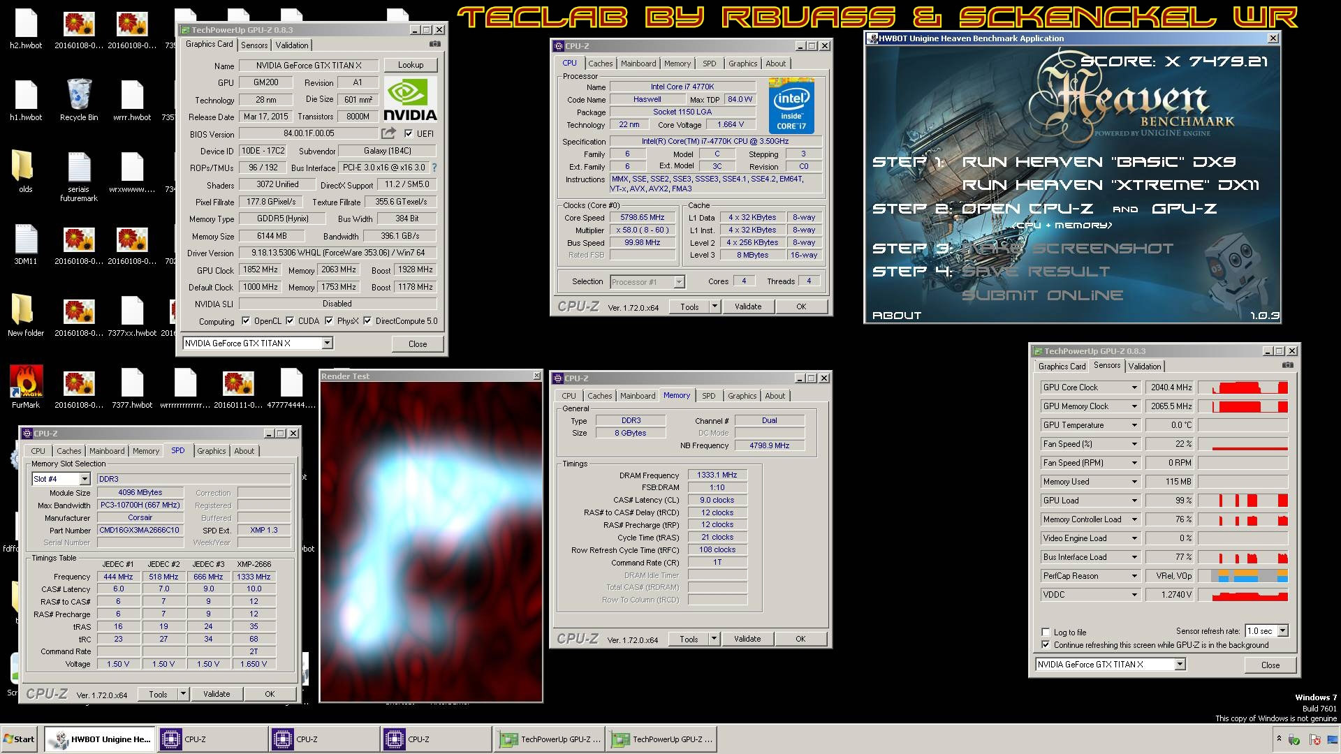 - Unigine Heaven (Xtreme): 7479 очков, 1 место;