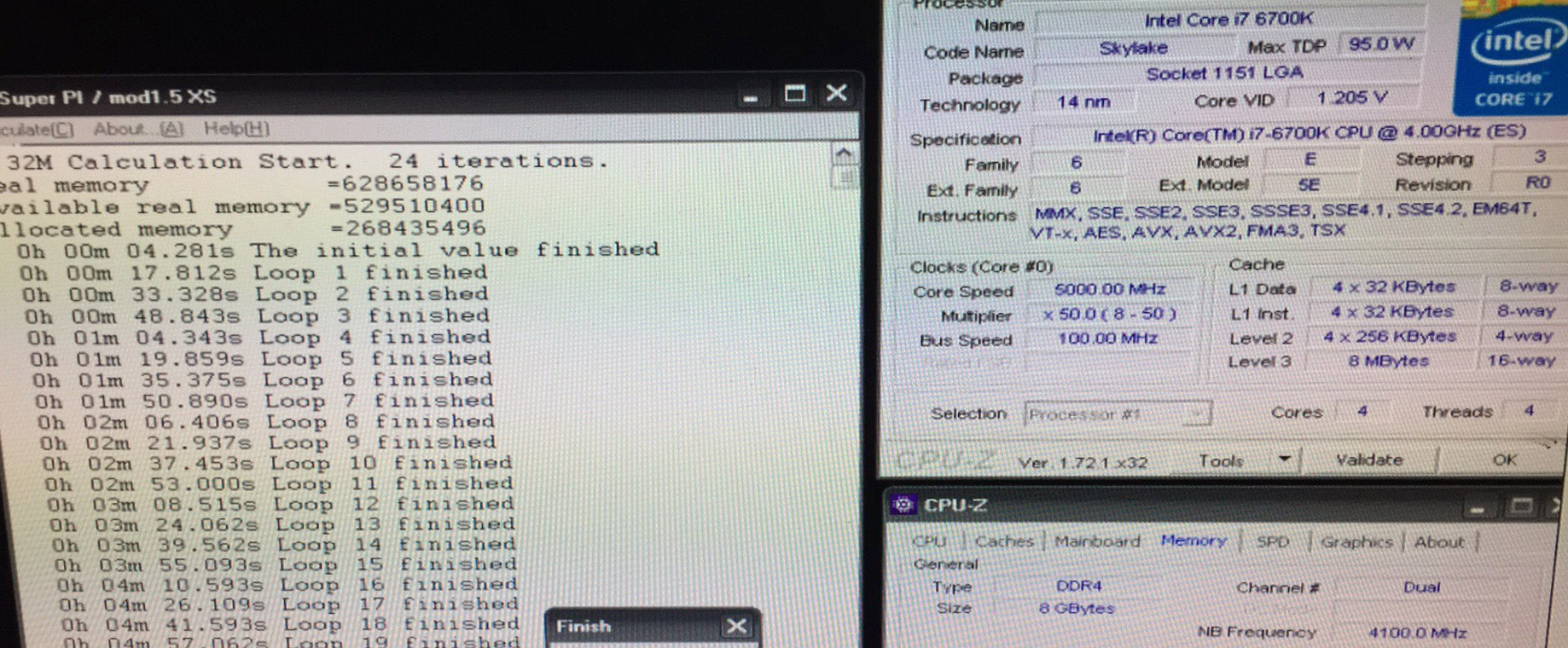 Помимо разгона Core i7-6700K до 5,2 ГГц для снятия скриншота, специалисты HKEPC запустили достаточно «легкий» бенчмарк SuperPi 32M на частоте 5 ГГц, с отключенной функцией Hyper-Threading. Результат остался «за кадром», но предугадать его нетрудно: при времени цикла (loop) в 15,5 с тест был пройден примерно за шесть с половиной минут.