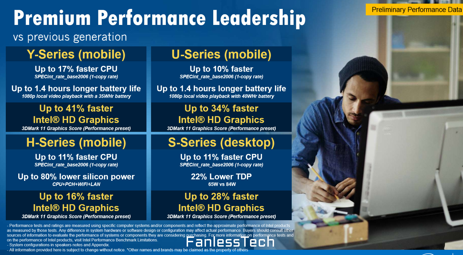 В плане производительности все более чем предсказуемо: символический прирост быстродействия вычислительных ядер и более-менее ощутимый — графической подсистемы (особенно в сегменте экономичных SoC U- и Y-серий).