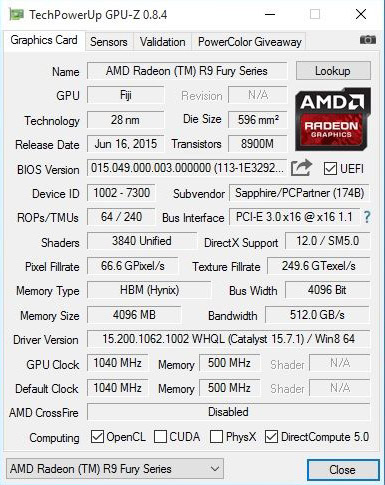 Первым счастливчиком оказался постоянный участник конференции Overclock.net под ником RV8000 — его Radeon R9 Fury теперь оперирует 3840 потоковыми процессорами вместо 3584.