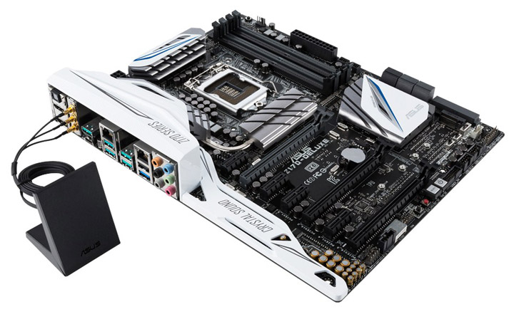 Эта плата может похвастаться массивной системой охлаждения, наличием адаптера беспроводной сети Wi-Fi (802.11ac, до 1300 Мбит/с) с внешней антенной, шести портов USB 3.1 (включая один типа C), разъемов SATA Express и M.2 x4 Socket 3. Вместе с тем на слоты PCI Express x16 приходится только 20 линий PCI-E 3.0 и поддерживаются только связки 2-Way SLI/CrossFireX на скорости x8/x8 и 3-Way CrossFireX по формуле x8/x8/x4 или x8/x4/x4.