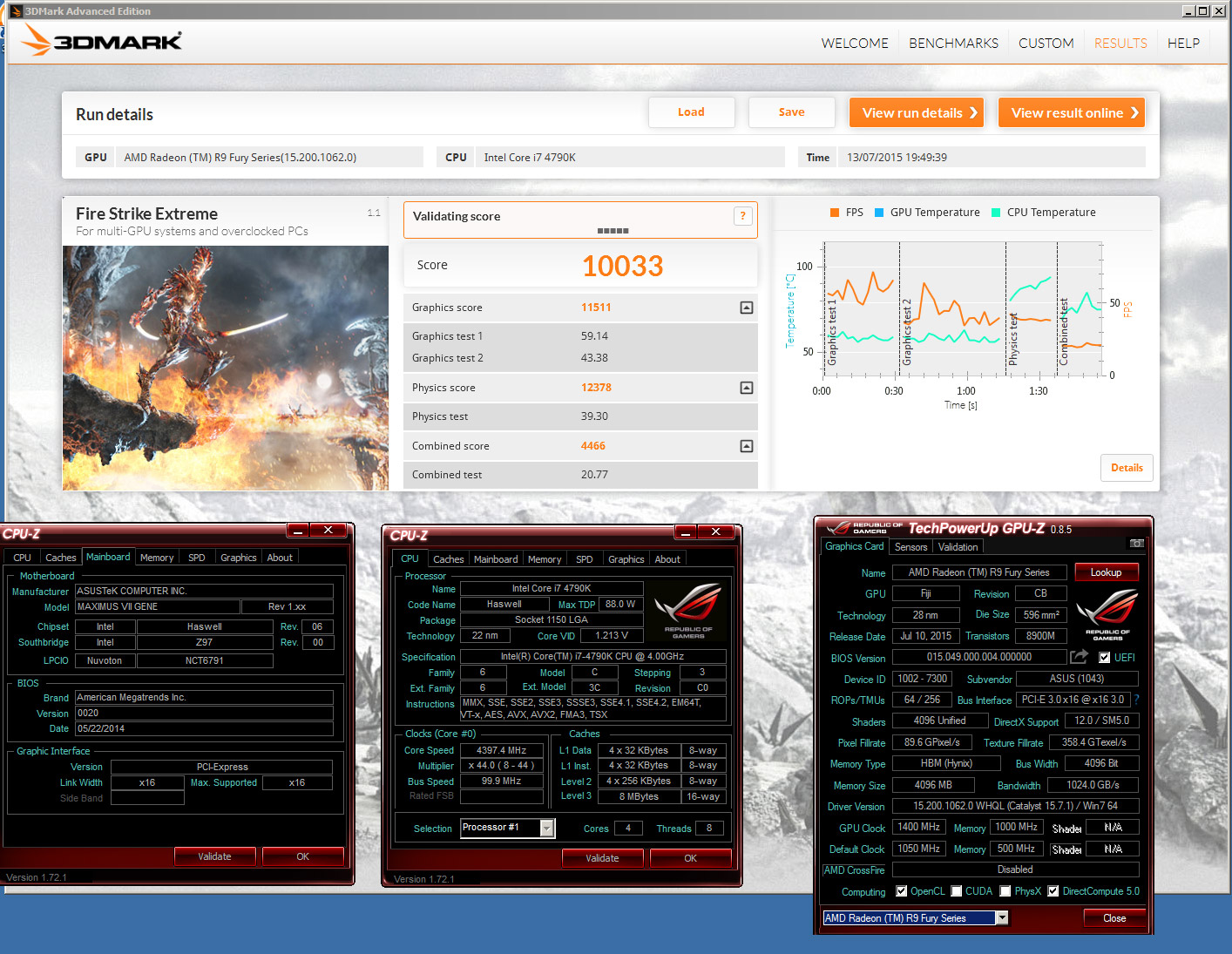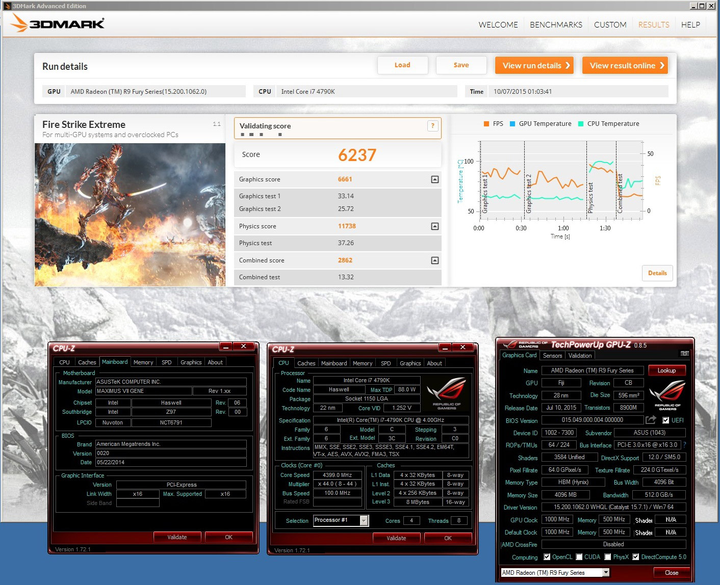 Комплекс вышеописанных мер обеспечил прирост в бенчмарке 3DMark Fire Strike Extreme с 6237 до 10033 очков (+61%).