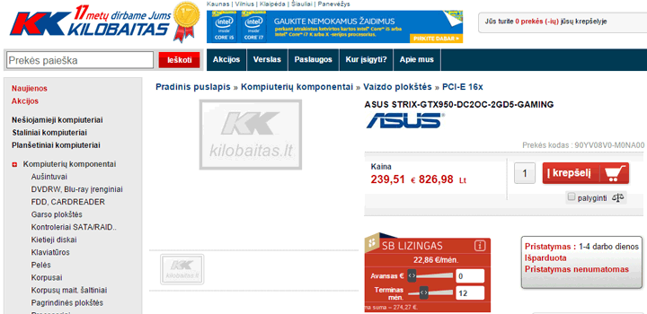 Наряду с сообщением о PNY GTX 950, ресурс VideoCardz привел скриншоты с сайтов двух европейских интернет-магазинов, на которых указаны цены (€240 и €281) карт Asus Strix-GTX950-DC2OC-2GD5-Gaming.