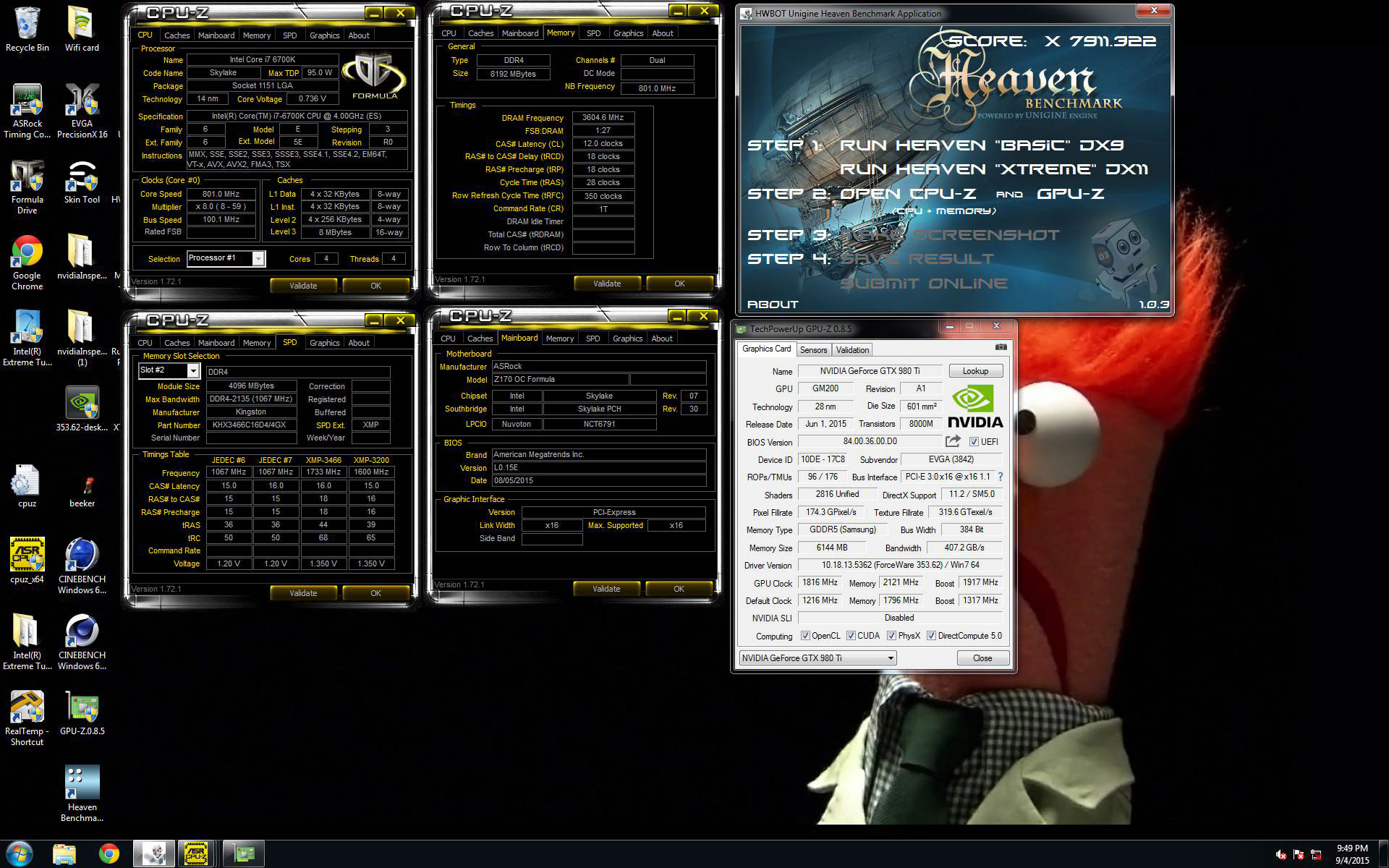 Примечательно, что оба американца использовали видеокарту EVGA GeForce GTX 980 Ti K|ngp|n Edition. Splave разогнал свой экземпляр до 2070 МГц по ядру, а K|ngp|n — до внушительных, но не рекордных для графических бенчмарков 2115 МГц. Несколько выше (6088 МГц против 5905 МГц) оказался и разгон процессора в исполнении Винса.