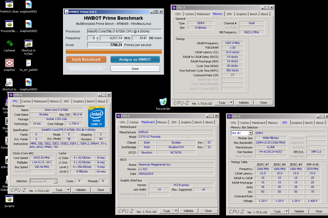 В составе своего оверклокерского стенда Dancop использовал материнскую плату Asus Maximus VIII Gene (Z170), оперативную память HyperX DDR4 и блок питания Seasonic 1200W. В свою очередь, Splave задействовал плату ASRock Z170 OC Formula, память G.Skill Trident Z DDR4 и источник питания Antec HCP-1300.