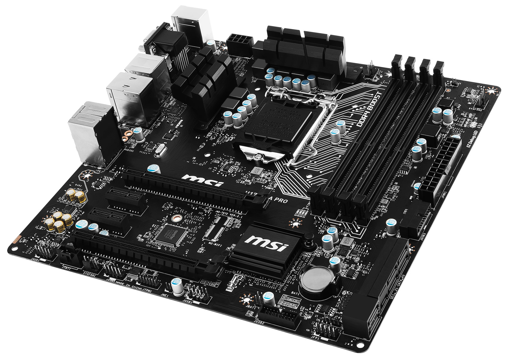 Каналов USB 3.1 Gen1 (5 Гбит/с) восемь, половина из них реализованы посредством штырьковых разъемов на PCB. Добавим, что MSI H170M-A Pro имеет гигабитный интерфейс проводной сети, 7.1-канальный аудиокодек, видеовыходы HDMI, DVI-D и D-Sub.