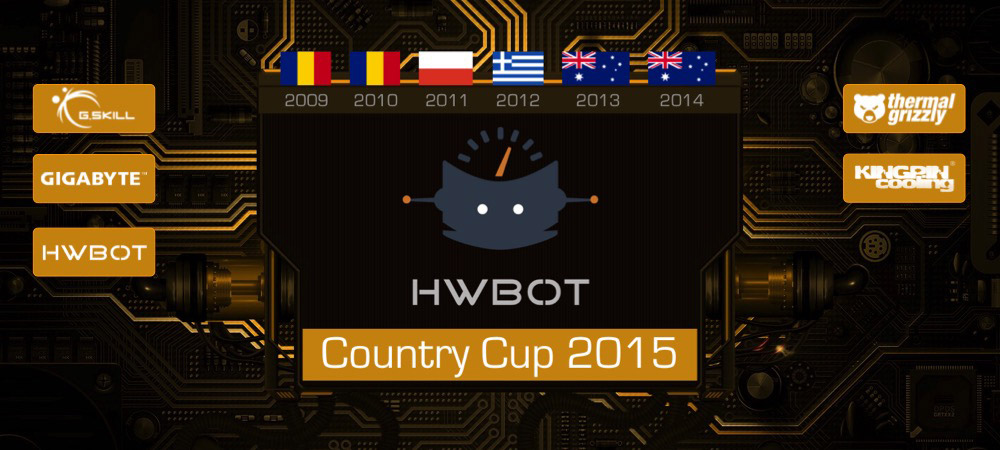 Сегодня администрация ресурса HWBot.org объявила о предстоящем запуске на платформе OC-eSports.io традиционного соревнования HWBot Country Cup. «Кубок стран 2015» стартует 1 ноября и завершится 20 декабря. В предыдущие годы почетный трофей дважды выигрывали австралийцы и румыны, по одному разу — греки и поляки.