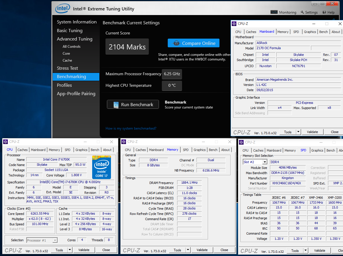 Рекорд в бенчмарке XTU на процессоре Core i7-6700K достиг 2104 очков