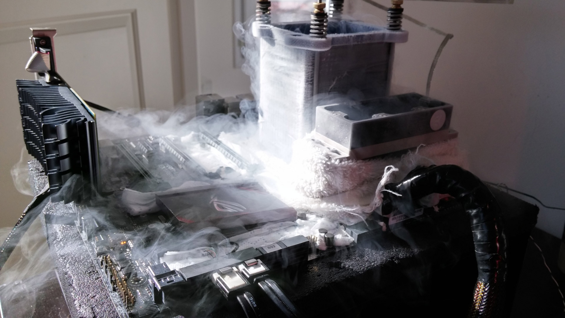 Немаловажную роль в итоговом успехе сыграла оперативная память HyperX DDR4, которая работала в режиме DDR4-3768 при задержках 11-16-16-28 и Command Rate 1T. Для тестирования также использовались материнская плата ASRock Z170 OC Formula и блок питания Antec HCP-1300 Platinum.