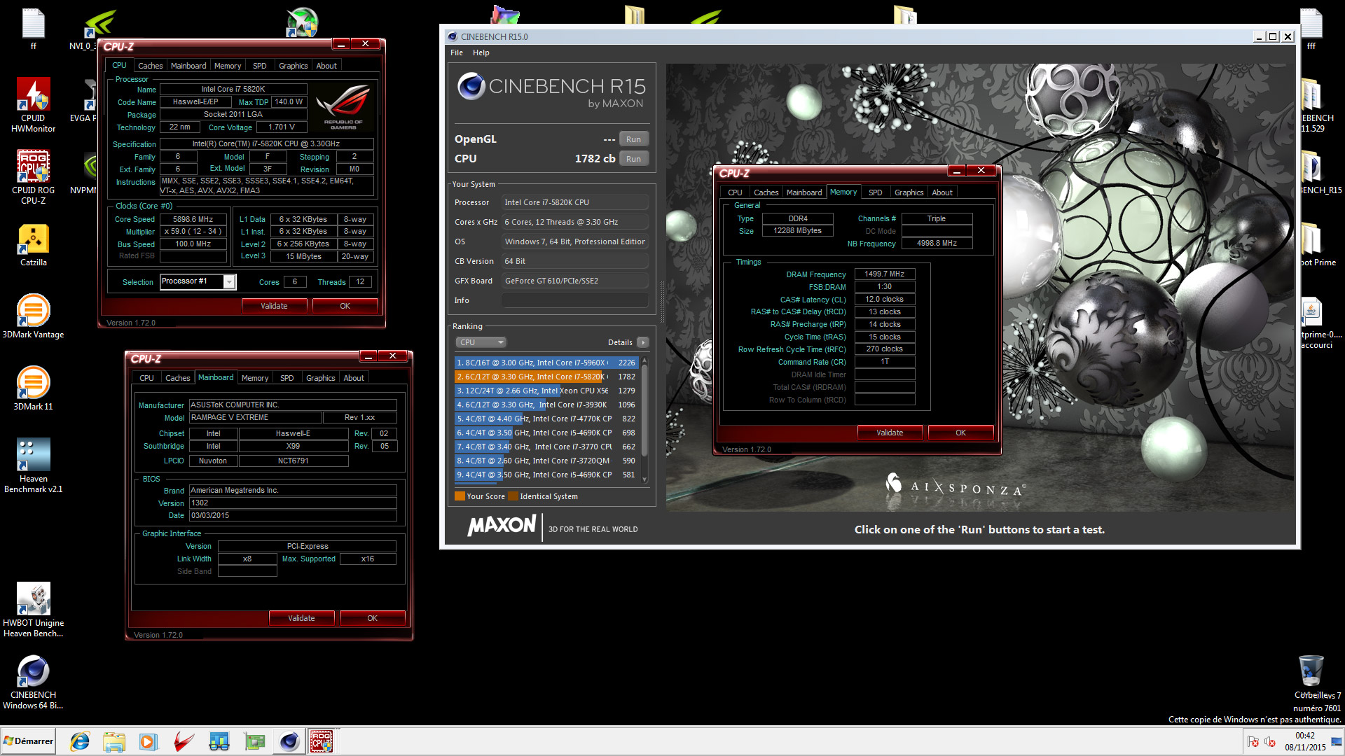 Сегодня Zwitterion добавил в базу достижений HWBot результат в тесте Cinebench R15 — 1782 очка, оказавшийся рекордным для всех шестиядерных процессоров как Intel, так и AMD. Француз «подвинул» на вторую строчку в данной дисциплине известного энтузиаста Xtreme Addict.
