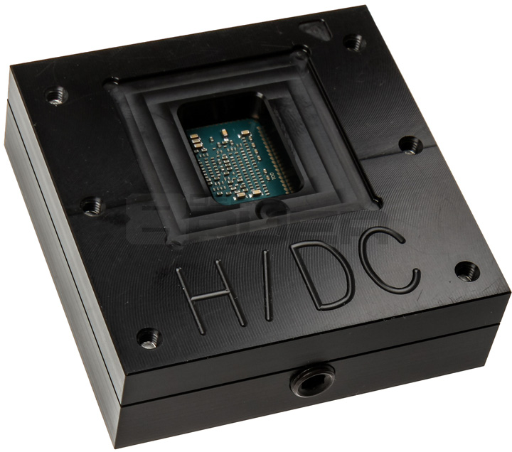Инструмент прост по своей конструкции. Он также использует метод сдвига, но процесс более безопасен. CPU фиксируется между двумя железными пластинами; внутри конструкции имеется поршень, смещающий крышку относительно подложки. Сама крышка изогнуться не сможет, кроме того, повредить ей контакты возле процессорного кристалла нельзя из-за малого хода поршня и, соответственно, крышки.