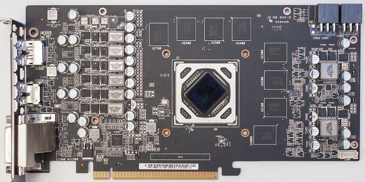 Система питания включает 8 (6+2) фаз и два разъема PCI-E Power 6-pin. Со спецификацией ядра Tonga XT можно ознакомиться в нашей вчерашней заметке.