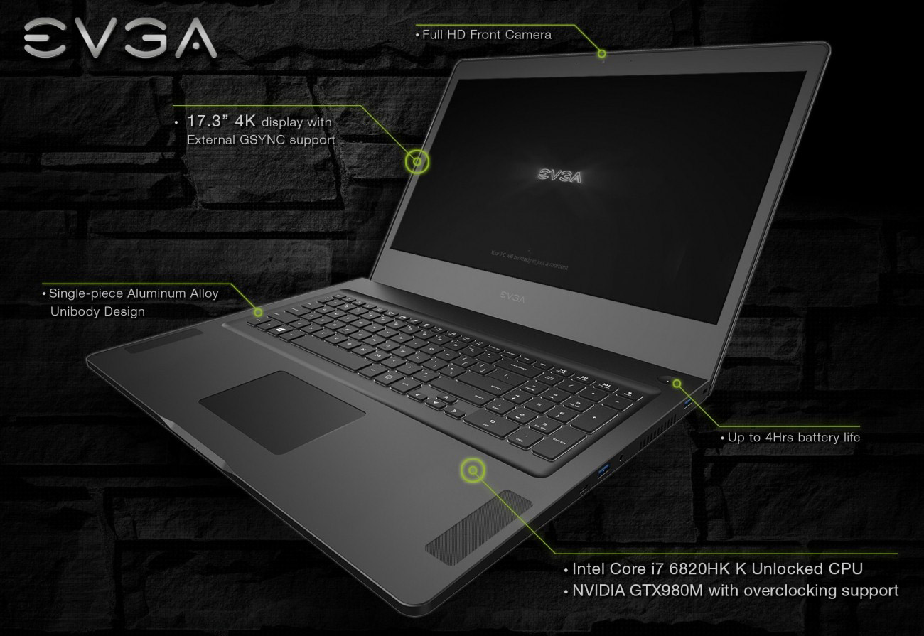 Лэптоп EVGA SC17 Gaming, релиз которого состоится в ближайшие недели или месяцы, попробует составить конкуренцию продуктам Asus, MSI, Dell/Alienware и других вендоров. Для этого у него немалый потенциал: четырехъядерный процессор Intel Core i7-6820HK со свободным множителем, видеокарта GeForce GTX 980M, до 32 ГБ оперативной памяти, а также 17,3-дюймовый экран с разрешением 3840x2160, частотой обновления 60 Гц и, опционально, поддержкой функции G-Sync.