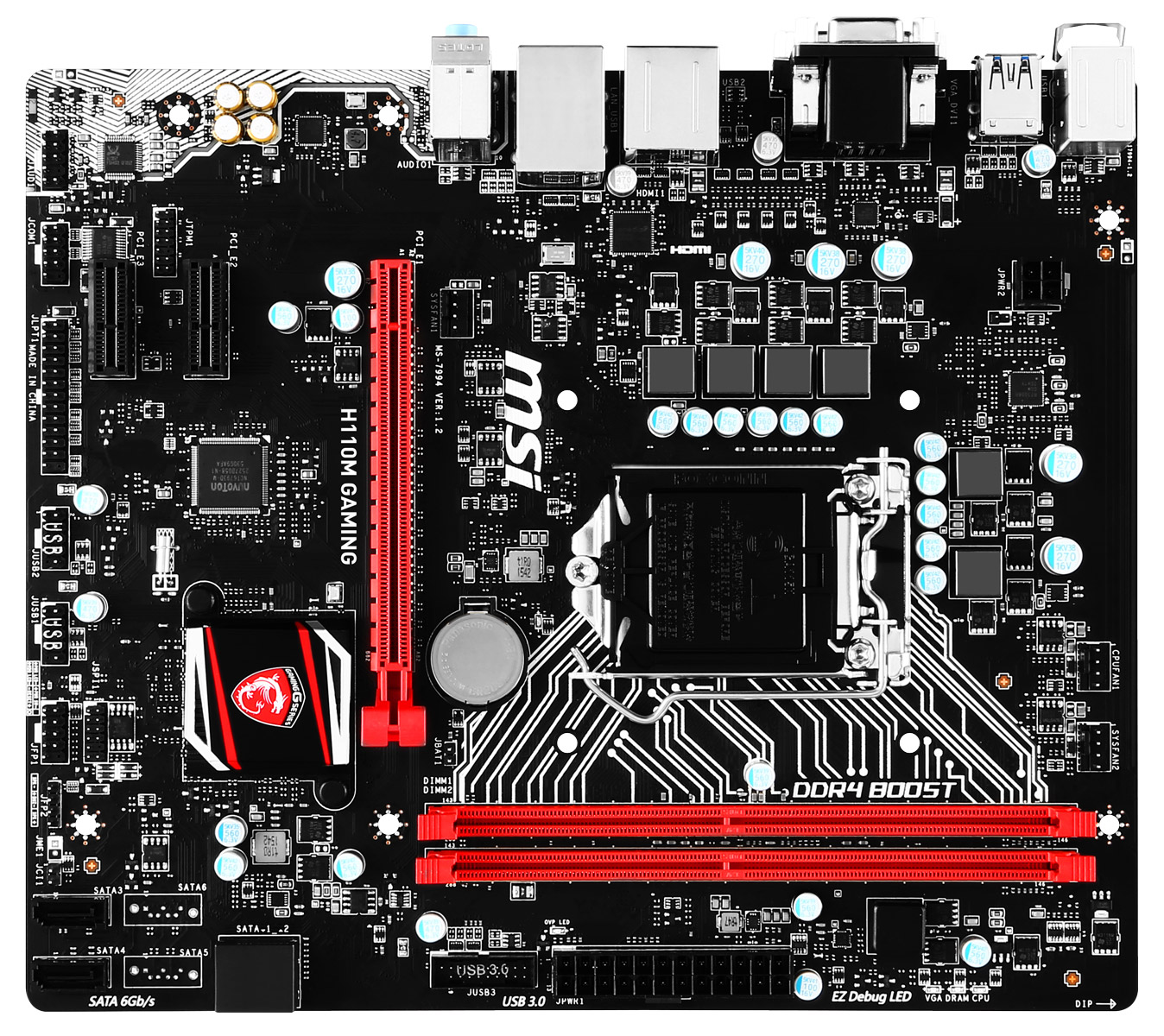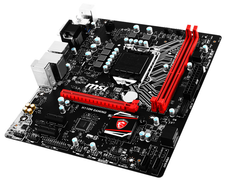 Компания MSI добавила в список актуальных моделей материнских плат для процессоров Skylake-S новинку H110M Gaming форм-фактора microATX (243x206 мм). Она обещает быть относительно недорогой (ориентировочно, в пределах €70) и при этом будет обладать геймерскими «примочками», такими как сетевой контроллер Intel I219V (управляется специальным ПО), изолированный аудиотракт, «аудиоконденсаторы», функция Game Boost и поддержка макросов Gaming Hotkey. Традиционная черно-красная расцветка дополнена красными светодиодами.