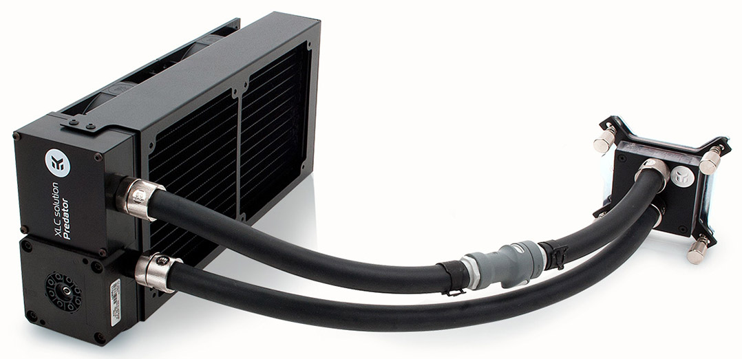 К слову, два дня назад EK представила СВО EK-XLC Predator 240 в модификации QDC — с возможностью быстрого подключения/отключения водоблока видеокарты. Новая версия стоит примерно на €20 дороже обычной — €268. Дело в том, что патентованное соединение Quick Disconnect, используемое, в частности, в медицинском оборудовании, выпускается сторонней компанией Colder Products и само по себе стоит недешево.