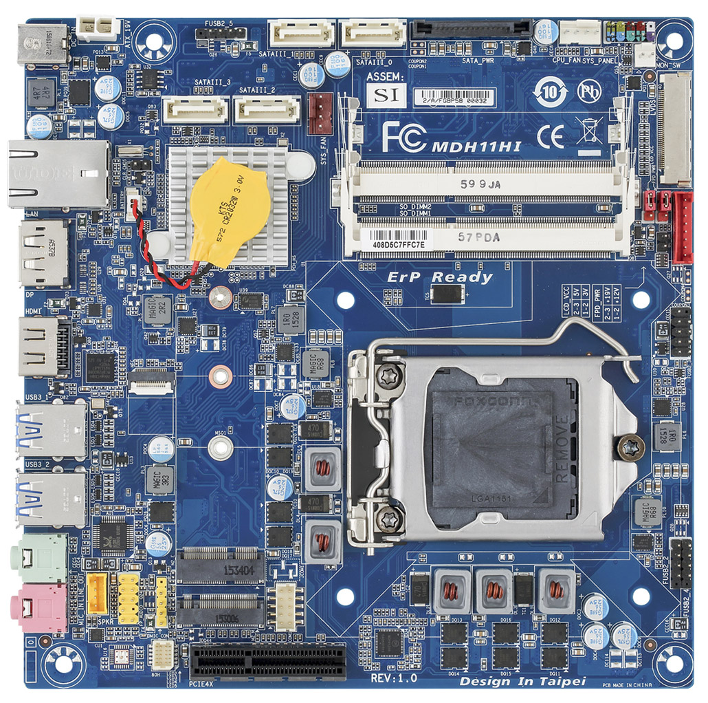 В ассортименте B2B-подразделения компании Gigabyte появилась компактная (170x170) материнская плата MDH11HI, выделяющаяся малой высотой деталей (20 мм) и наличием двух разъемов M.2 (Key M и Key E). Новинка основана на чипсете H110, поддерживает двух- и четырехъядерные процессоры Intel Skylake-S (скорее всего любые, кроме Core i7-6700K и Core i5-6600K). Сокет модели Gigabyte MDH11HI запитан по 5-канальной схеме.