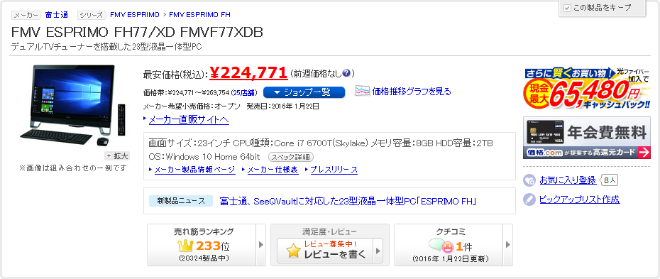 Fujitsu выпустила под известным в Японии брендом FMV 23-дюймовый моноблок Esprimo FH77/XD на платформе Intel Skylake. В системе используется четырехъядерный процессор Core i7-6700T (2,8/3,6 ГГц) в сочетании с 8 ГБ оперативной памяти DDR4-2133 и емким жестким диском на 2 ТБ (5400 об/мин). Отнести компьютер к категории высокопроизводительных не позволяет отсутствие графического адаптера от Nvidia или AMD: FMV Esprimo FH77/XD ограничивается встроенным решением Intel HD 530 (до 1100 МГц).