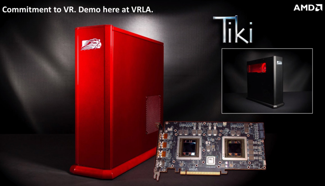 На днях мы писали о демонстрации видеокарты Radeon R9 Fury X2 (на двух чипах Fiji) в составе игровой системы «Prototype Tiki» от Falcon Northwest. Увидеть ее могли присутствовавшие на мероприятии VRLA журналисты. Как выяснилось позже, вице-президент AMD Рой Тейлор (Roy Taylor) в своем выступлении на VRLA раскрыл одну из ключевых характеристик «двойного» Fiji.