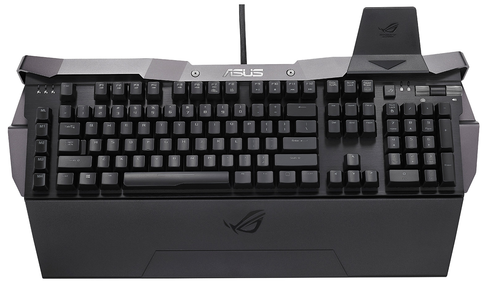 На днях Asus анонсировала новую механическую игровую клавиатуру ROG Horus GK2000. Устройство внушительного размера (526,5x170x49 мм) и еще более внушительной массы (1,7 кг) оснащено встроенным 32-битным процессором (MCU) и 4 МБ памяти для исполнения макросов и их хранения соответственно. Дизайн клавиатуры предусматривает наличие элементов из 3-мм алюминия и АБС-пластмассы, отсоединяемой подставки для ладоней рук, наличие подсветки клавиш и регулируемых ножек.