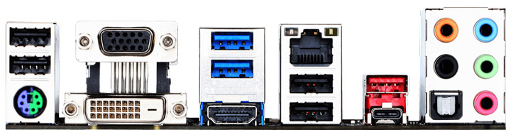 На заднюю панель, среди прочего, выведены порты USB 3.1 типов A и C (контроллер ASMedia).