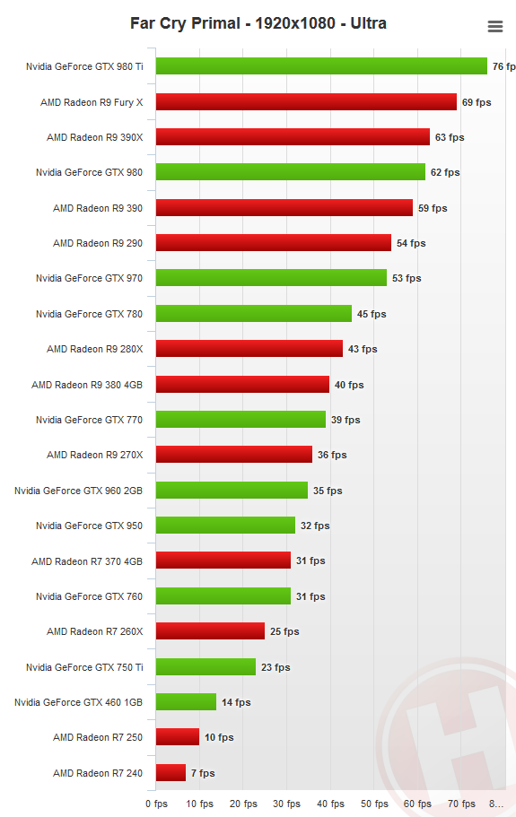Far Cry Primal, 4K и графика на максимуме — посильная задача только для старших одночипов (Fiji, GM200), причем в лидеры выходит Radeon R9 Fury X. Для средних настроек должно хватить GeForce GTX 980 или Radeon R9 290.