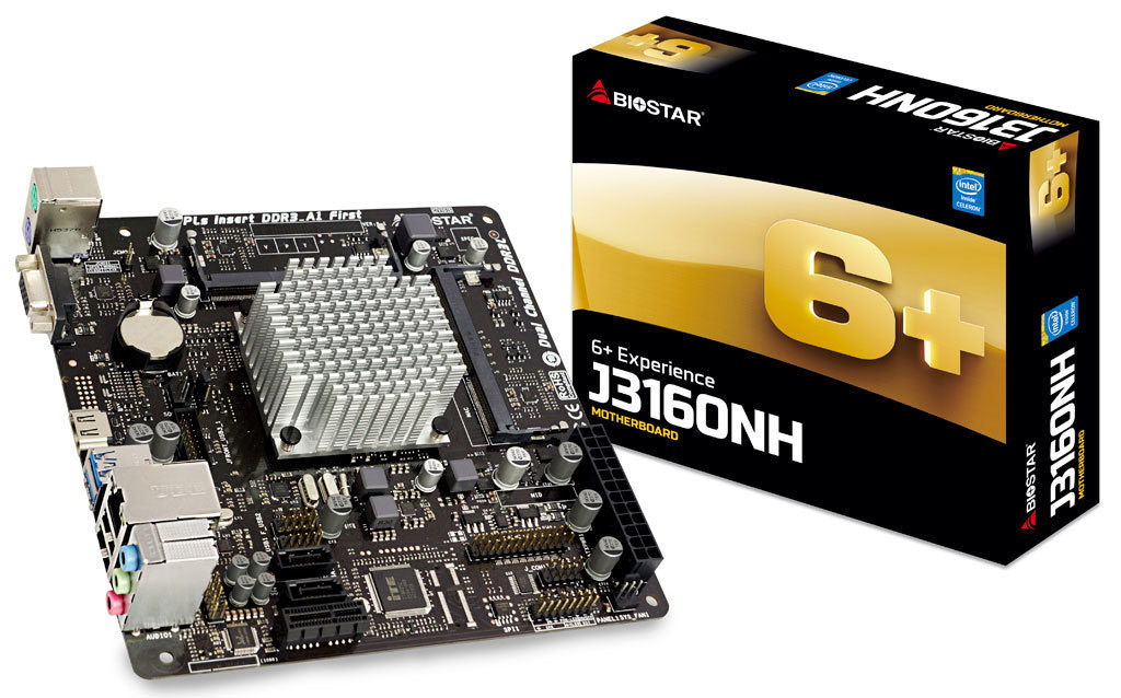 Компания Biostar довольно комфортно чувствует себя в сегменте бюджетных материнских плат, зачастую выпуская модели с SoC на борту. На новой плате Biostar J3160NH нашлось место для экономичного четырехъядерного процессора Intel Celeron J3160 (1,6/2,24 ГГц) семейства Braswell и небольшого количества разъемов для подключения остальных комплектующих.