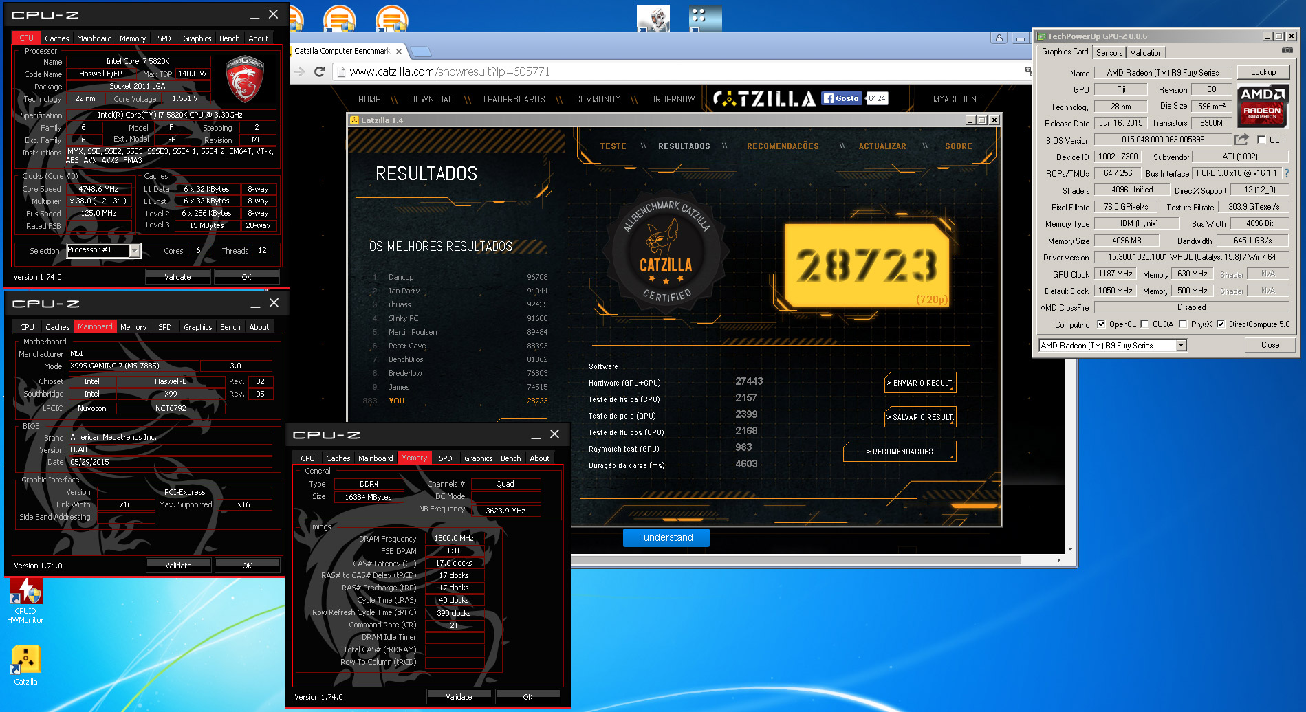 Из результатов, показанных в ходе седьмого Novice Nimble, пожалуй, стоит выделить локальный рекорд португальца oTaNeR (из Overclock.net) в бенчмарке Catzilla 720p (28723 очка) на видеокарте Radeon R9 Fury X.