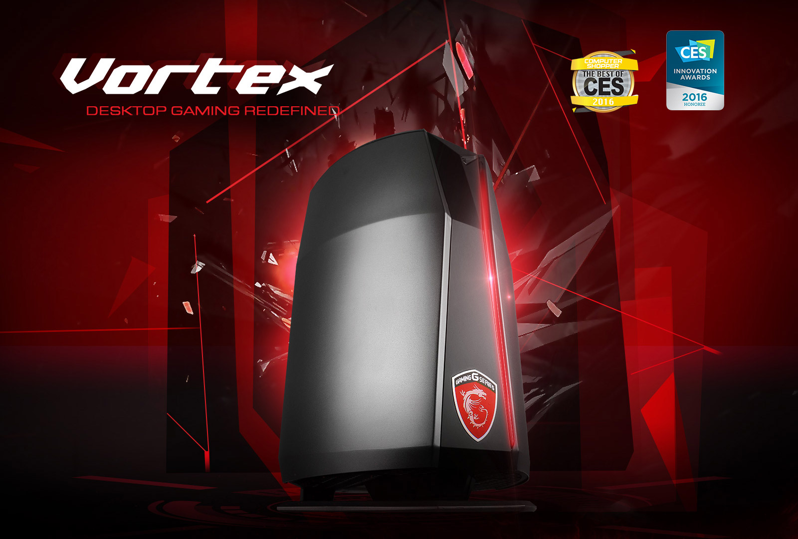 Подразделение MSI, занимающееся проектированием и выпуском ноутбуков, подготовило высокопроизводительный настольный ПК Vortex модели G65. Система предлагается в конфигурациях со SLI-тандемами видеокарт GeForce GTX 960 (SLI-011) и GeForce GTX 980 (SLI-002), по ценам $2200 и $4000 соответственно (актуальны для рынка США).