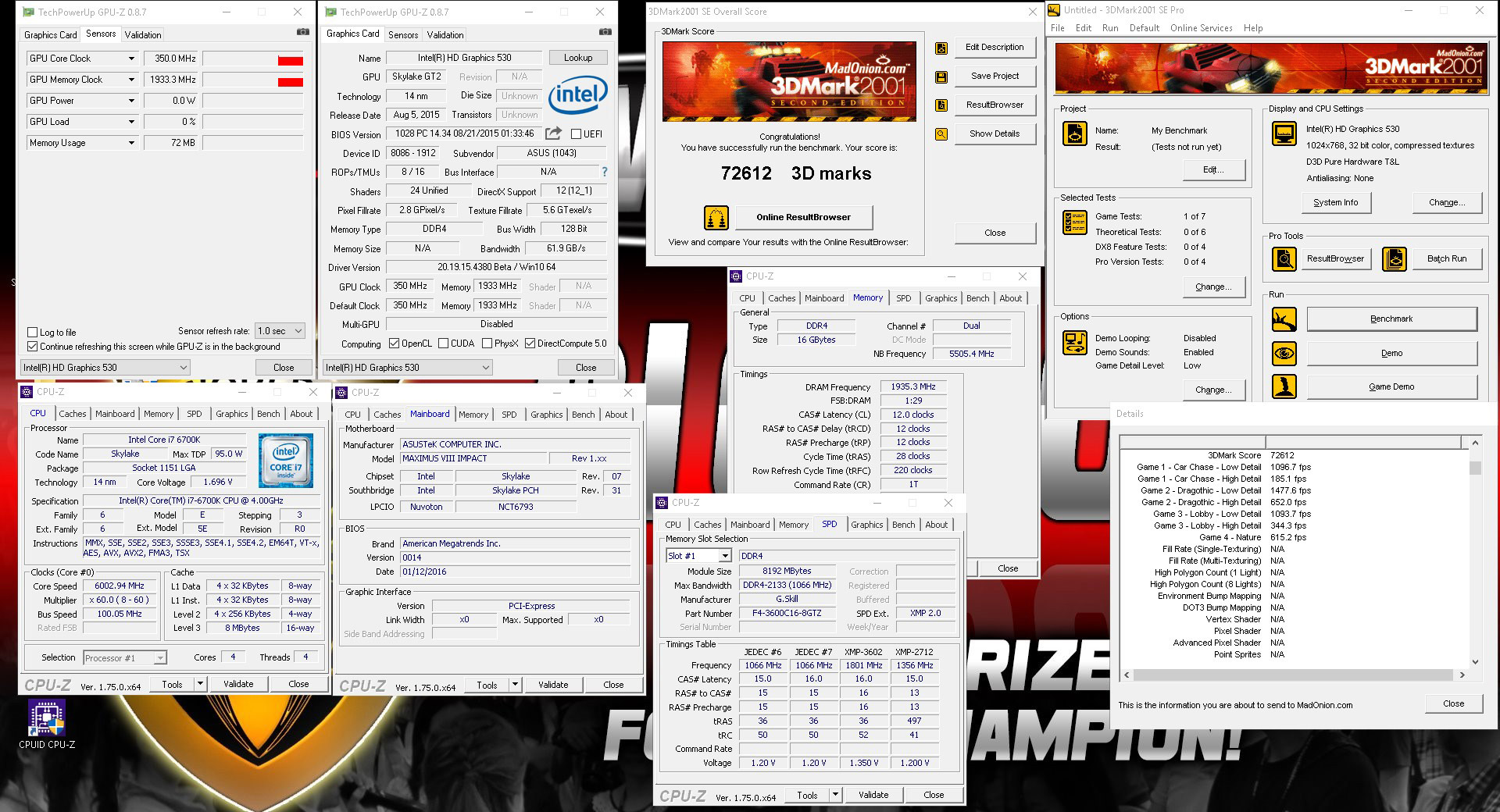 Строгие условия участия стали не единственной проблемой оверклокеров, борющихся за попадание в гранд-финал турнира G.Skill OC World Cup 2016. Так, уже по ходу соревнования организаторы приняли решение заменить дисциплину 3DMark2001 SE бенчмарком 3DMark Vantage/Performance для тестирования встроенной графики CPU Intel Skylake. Причиной тому стало явное несоответствие частот компонентов и результатов при очень низкой, близкой к «колдбагу», температуре интегрированных видеоядер.