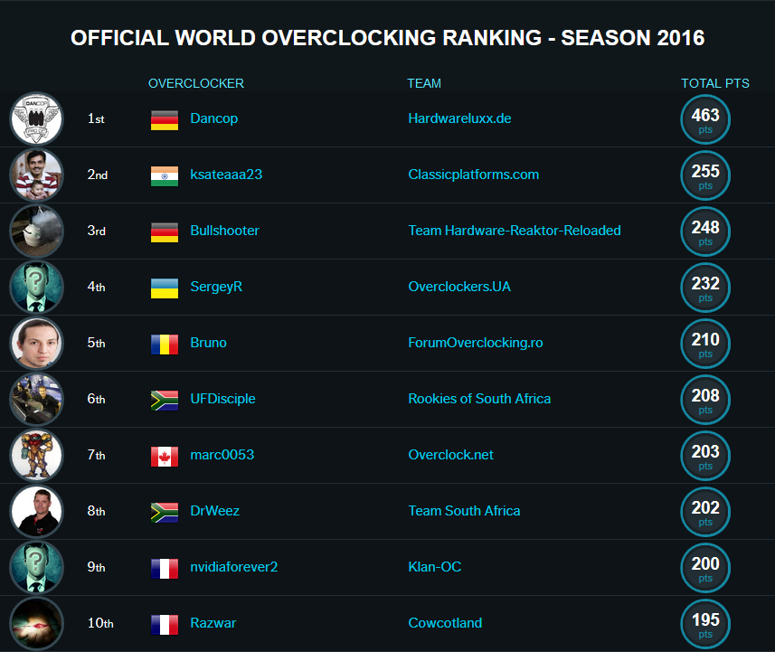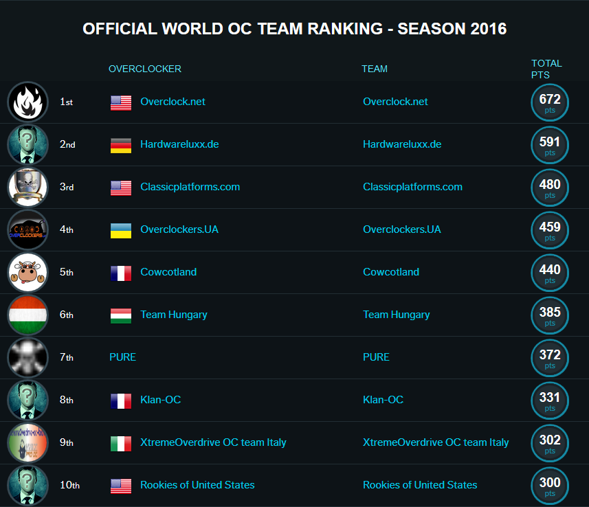 Администрация ресурсов HWBot.org и OC-eSports.io подвела итоги первого квартала в мире соревновательного бенчмаркинга, выделив как команды, так и отдельных оверклокеров, выступивших наиболее ярко в соревнованиях на OC eSports в январе-марте. Командный рейтинг возглавили «тяжеловесы» Overclock.net, опередив немецкий коллектив Hardwareluxx. В личном зачете с большим отрывом первенствовал Dancop.
