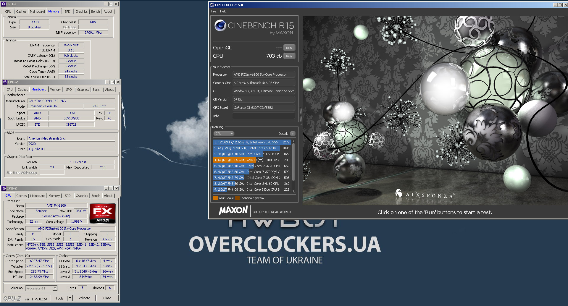Капитан HWBot-команды Overclockers.UA StingerYar крепко взялся за разгон процессора AMD FX-6100, использовав для экспериментов жидкий азот. «Пристрелочный» результат 7370 МГц, к слову 6-й в мире на данном CPU, в итоге оказался лучшим в бенч-сессии.