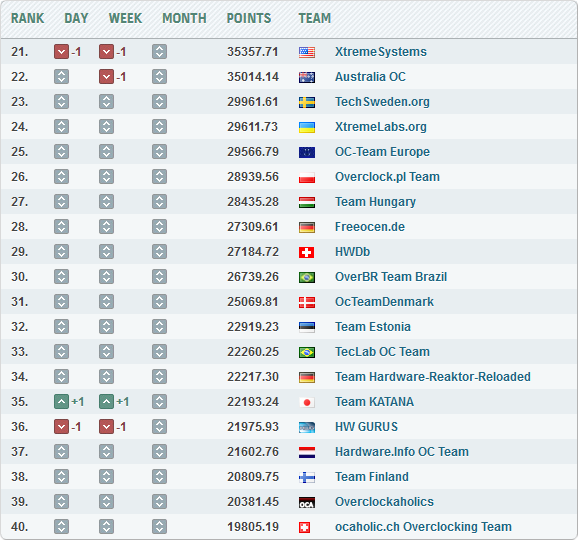 Учитывая богатые традиции американского коллектива, а также высокую активность Hellas Overclocking Team (Греция), борьба за 18 место предстоит нешуточная. Из первой двадцатки определенные проблемы (судя по низкой результативности) в последние годы испытывают Team MXS, AwardFabrik и Klan-OC.