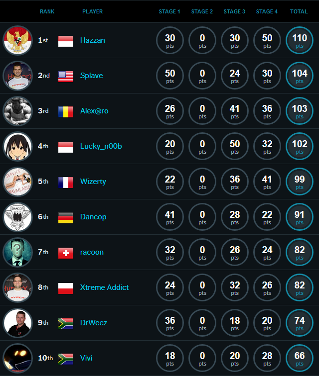 Так кто же поведет борьбу за главный приз в размере $10 тыс. в финале? В заветные топ-6 вошли индонезийцы Hazzan и Lucky_n00b, имеющие немалый опыт в очных соревнованиях, американец Splave (команда ocXtreme), Alex@ro из Румынии (лидер словенской команды OC-Lab), а также Wizerty и Dancop из Франции и Германии соответственно. В число запасных попали Racoon (Швейцария), Xtreme Addict (Польша) и другие оверклокеры.