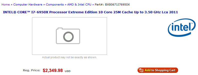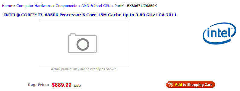 Интернет-магазин NCIXUS, в опережение официального анонса процессоров Intel Broadwell-E для платформы LGA2011-3, добавил в свой прайс-лист процессоры Core i7-6950X, i7-6900K, i7-6850K и i7-6800K. Их можно предзаказать либо подписаться на извещение по электронной почте.