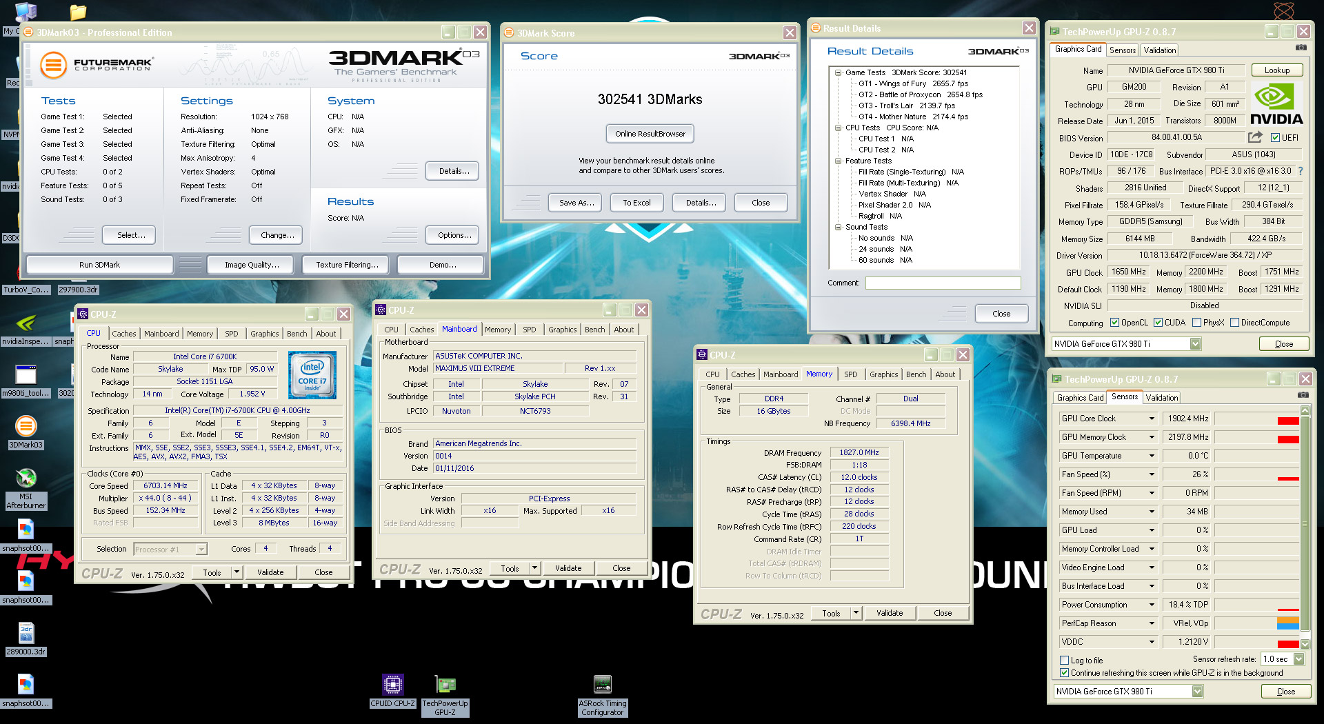 Лидер Extreme-лиги HWBot.org Rauf из Швеции побил мировой рекорд в бенчмарке 3DMark03 для систем с одним графическим ядром. Новый ориентир составил 302541 очко — на полторы тысячи больше, чем набрал Smoke месяц назад. Оба мастера экстремального разгона использовали видеокарту Asus GeForce GTX 980 Ti Matrix Platinum линейки ROG. Rauf разогнал свой экземпляр до 1902/8792 МГц (ядро/память) под жидким азотом.