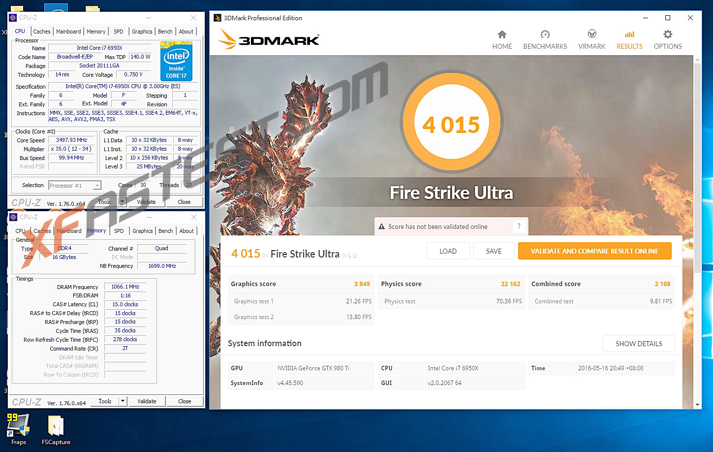 Бенчмарк 3DMark Fire Strike Ultra оценил Core i7-6950X в 22162 очка (расчёты физики).
