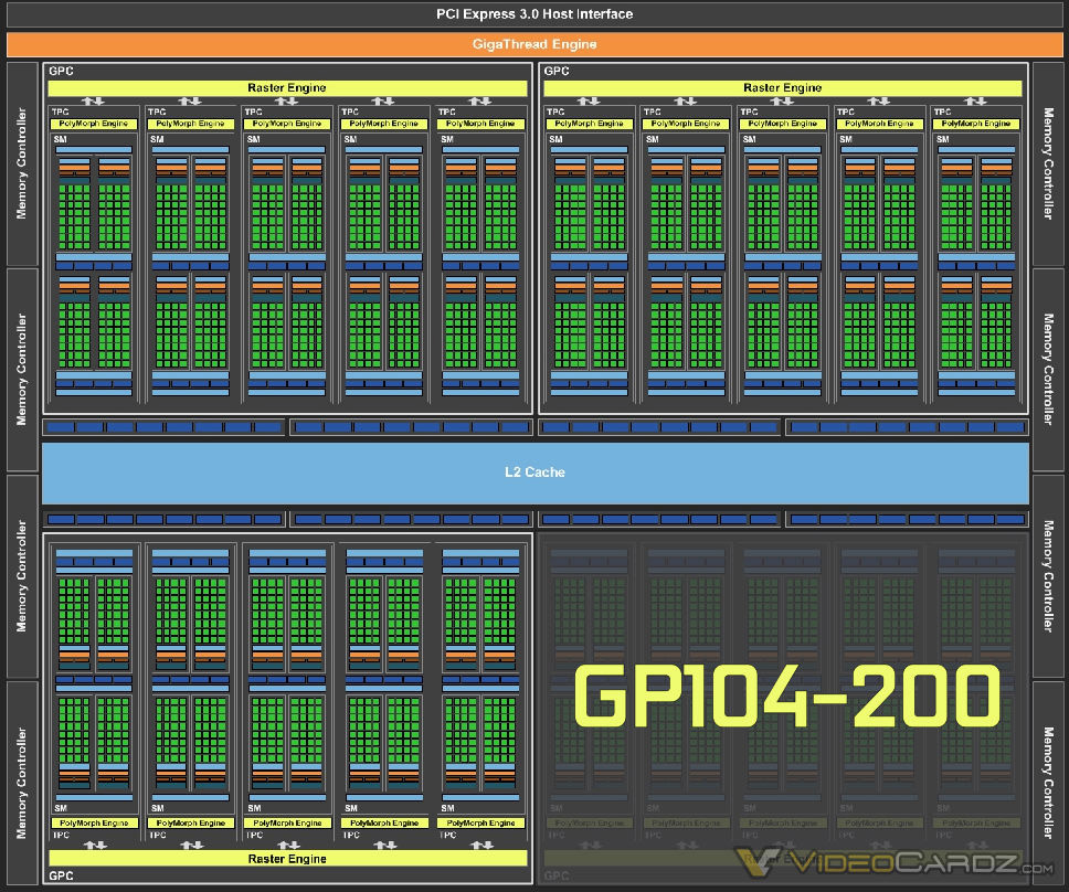 Готовящаяся новинка базируется на ядре GP104-200 с 1920 потоковыми процессорами (отключён один GPC-кластер), шиной памяти разрядностью 256 бит и 8 ГБ ОЗУ GDDR5 (а не GDDR5X, как у GTX 1080). Частота чипа составляет минимум 1506 МГц, а в boost-режиме — 1683 МГц. Память на 20% медленнее, чем у старшей модели — эффективные 8 ГГц (8 Гбит/с).