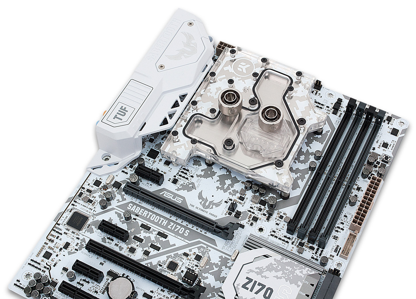 Чуть раньше в ассортименте EK Water Blocks появился моноводоблок для материнской платы Asus Sabertooth Z170 S. Кроме процессора он призван охлаждать транзисторы VRM сокета LGA1151. Рекомендованная цена EK-FB Asus Z170S Monoblock/Nickel составляет €120.