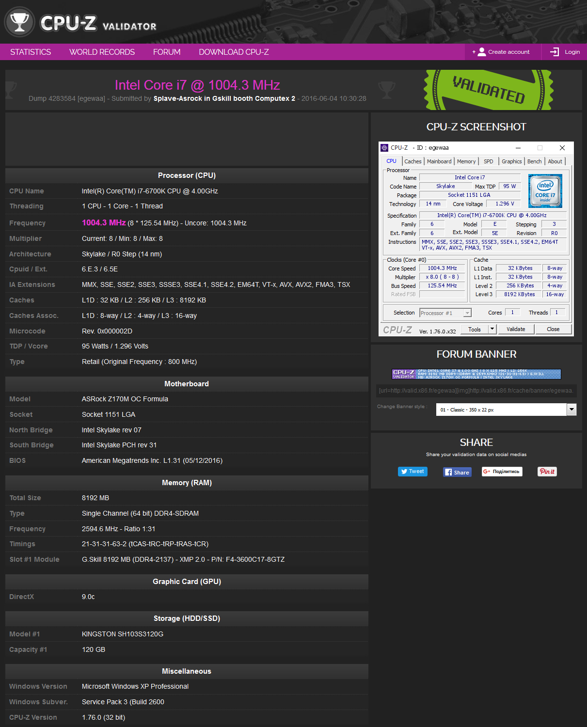 Возвращаясь к результату Splave, отметим, что американец задействовал в системе сильно замедленный (1 ядро, 1004 МГц) и притом охлаждаемый жидким азотом процессор Core i7-6700K и память Trident Z DDR4 на новых микросхемах Samsung. Опорная частота (BCLK) повышалась до 125,54 МГц.