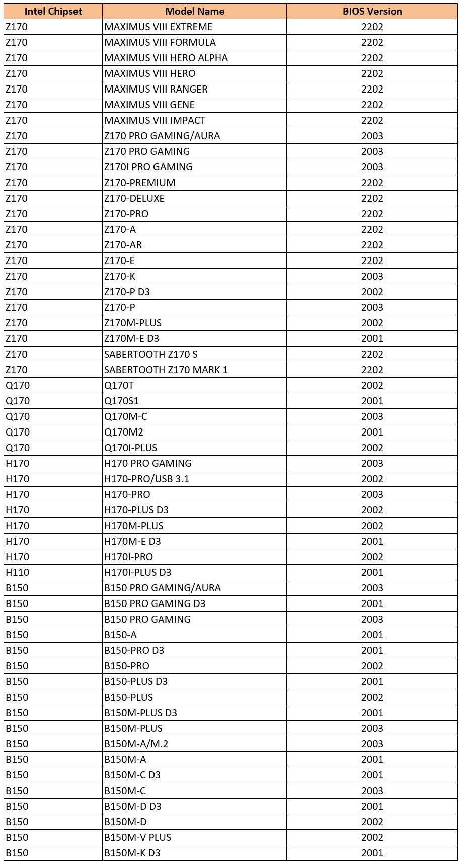Новые прошивки UEFI доступны для загрузки на официальном сайте, а обновляться производитель рекомендует при помощи функции USB BIOS Flashback, которая установит обновление с флеш-накопителя даже при отсутствии процессора и оперативной памяти, либо используя утилиту EZ Update. Напомним, что первые процессоры Intel Kaby Lake появятся на прилавках магазинов уже в январе следующего года. Список материнских плат, для которых доступны новые версии прошивки UEFI, представлен ниже.