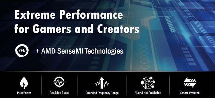 В новых процессорах инженеры AMD реализовали целый набор новых технологий, получивший название SenseMI. В него входят Extended Frequency Range (XFR), благодаря которой чипы Ryzen смогут автоматически повышать рабочую частоту (сверх частоты boost-режима), пока уровень тепловыделения процессора не превысит возможности системы охлаждения, Precision Boost и Pure Power, задачей которых является достижение максимально низкого напряжения питания при заданной рабочей частоте и, минимизация энергопотребления процессора.