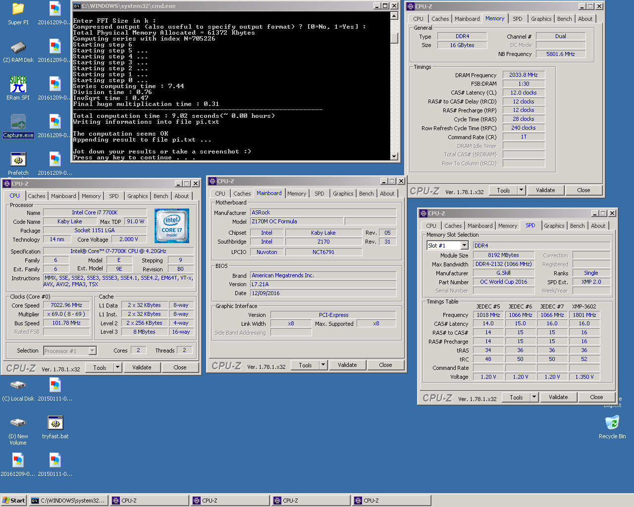 Американский мастер разгона Splave, в своё время поставивший целый ряд рекордов на процессоре Intel Core i7-6700K, добрался и до ещё не вышедшего чипа Core i7-7700K из семейства Kaby Lake-S. На днях американец разогнал данный «камень» до 7023 МГц и установил новый мировой рекорд в бенчмарке PiFast, который удалось завершить всего за 9,02 секунды.