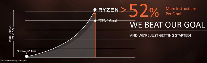 Как известно, при разработке процессоров Ryzen чипмейкер ставил перед собой достичь 40-процентного увеличения количества обрабатываемых инструкций за такт по сравнению с процессорами Excavator. Однако компании удалось перевыполнить план и увеличить данный параметр более чем в полтора раза.