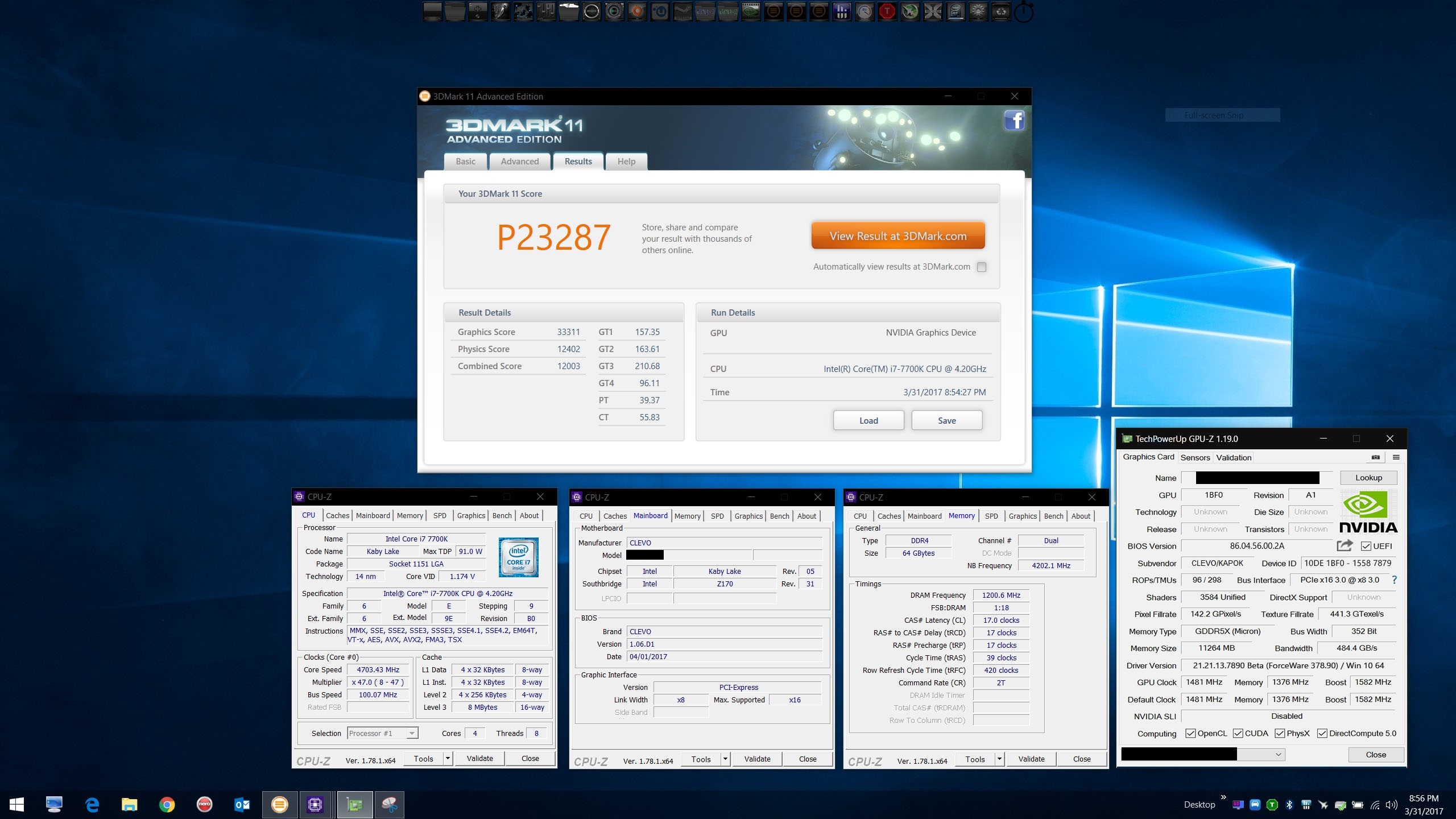 Как сообщает один из пользователей форума NotebookReview, у тайваньской компании Clevo уже готов образец нового игрового лептопа с видеокартой GeForce GTX 1080 Ti. В качестве подтверждения своим словам энтузиаст привёл снимок экрана с результатами 3DMark 11, а также показаниями утилит GPU-Z и CPU-Z. Отмечается, что новый видеоадаптер занял в ноутбуке сразу два слота MXM и охлаждается модифицированным кулером с применением испарительной камеры. Из этого можно сделать вывод, что разработчики всё ещё экспериментируют с дизайном платы, и официальный дебют новинки может состояться как в ближайшие несколько недель, так и в следующие несколько месяцев.