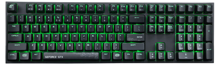 Тайваньская компания Cooler Master, получившая широкую известность благодаря своим системам охлаждения, компьютерным корпусам, блокам питания и прочим аксессуарам, представила особую версию клавиатуры MasterKeys Pro L, предназначенную в первую очередь для поклонников видеокарт Nvidia. Новинка получила яркую зеленую светодиодную подсветку, гравировку логотипа и названия GeForce GTX на клавишах, а также пометку Nvidia Edition.