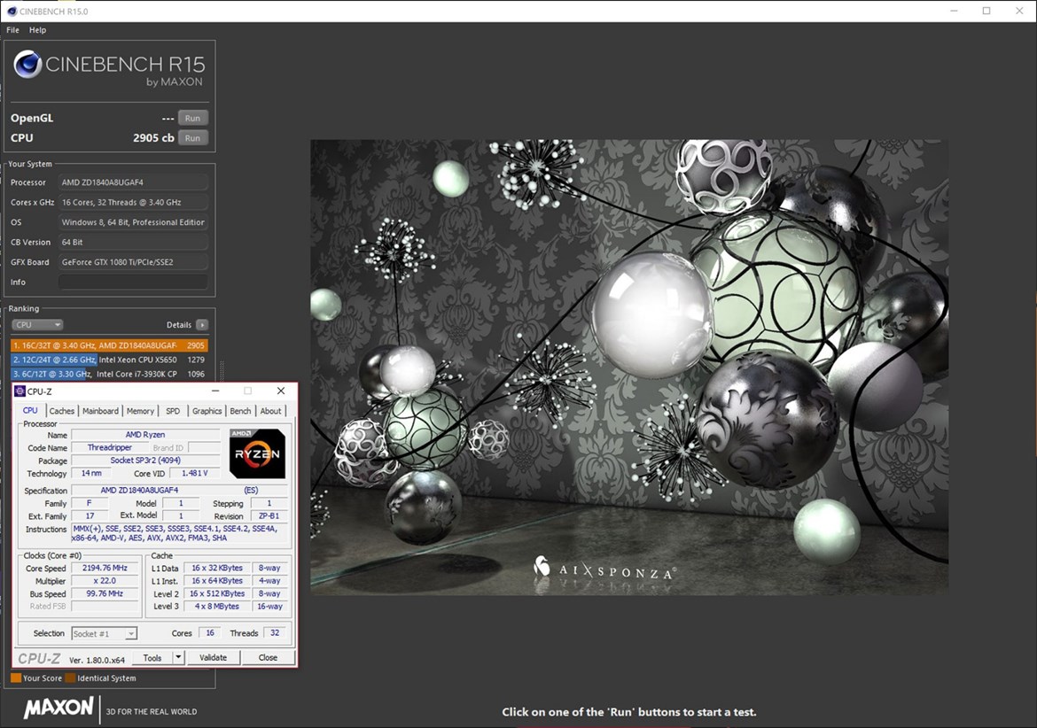 Помимо этого, в рамках выставки ChinaJoy 2017 демонстрировался другой Alienware Area 51 на базе 1950X и видеоадаптера Radeon RX 580. Показав аналогичный результат в Cinebench R15, система была также испытана во встроенном бенчмарке CPU-Z. В однопоточном тесте результат AMD Ryzen Threadripper 1950X составил 406 очков, а во многопоточном — 8946 баллов. Для сравнения 8-ядерный Ryzen 7 1800X набирает 400/4542 «попугаев» соответственно, а Intel Core i9-7900X порядка 5000 баллов во многопоточном режиме.