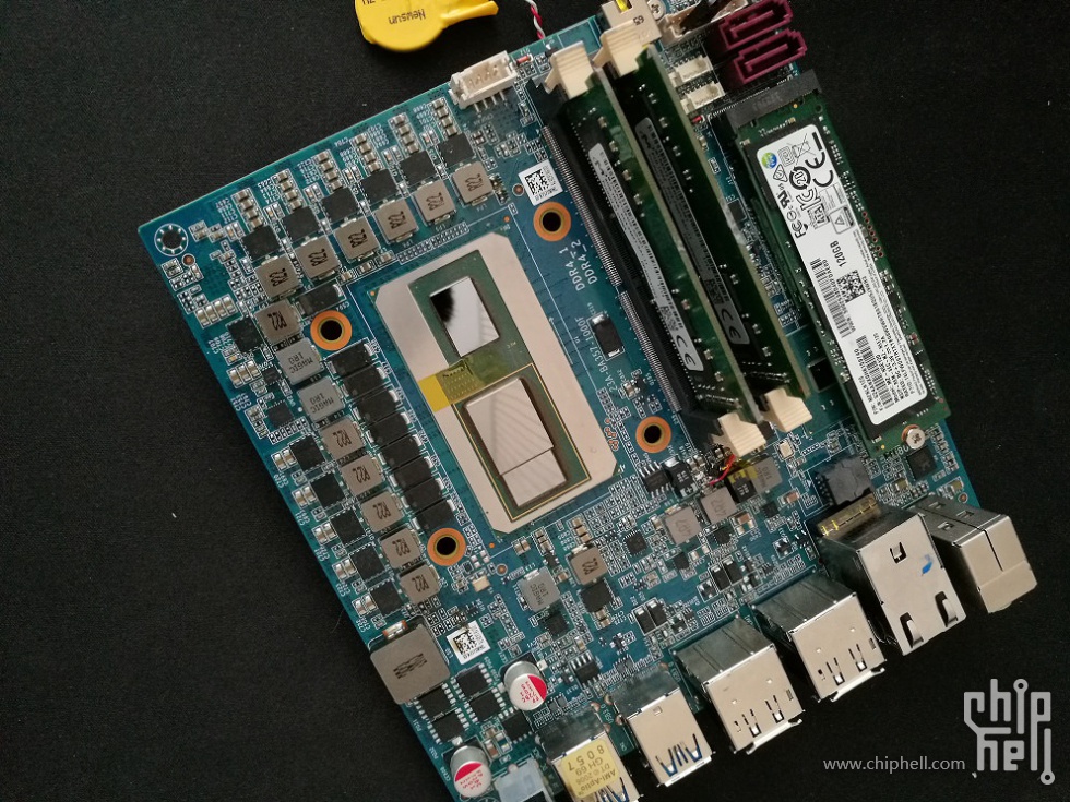 Также стоит уделить внимание массивной системе питания запечатлённого на фото процессора Intel Core H, косвенно подтверждающей информацию о теплопакете ещё не вышедших CPU. По предварительным данным, номинальный TDP первых представителей нового «семейства» многочиповых процессоров будет равен 65 или 100 Вт.