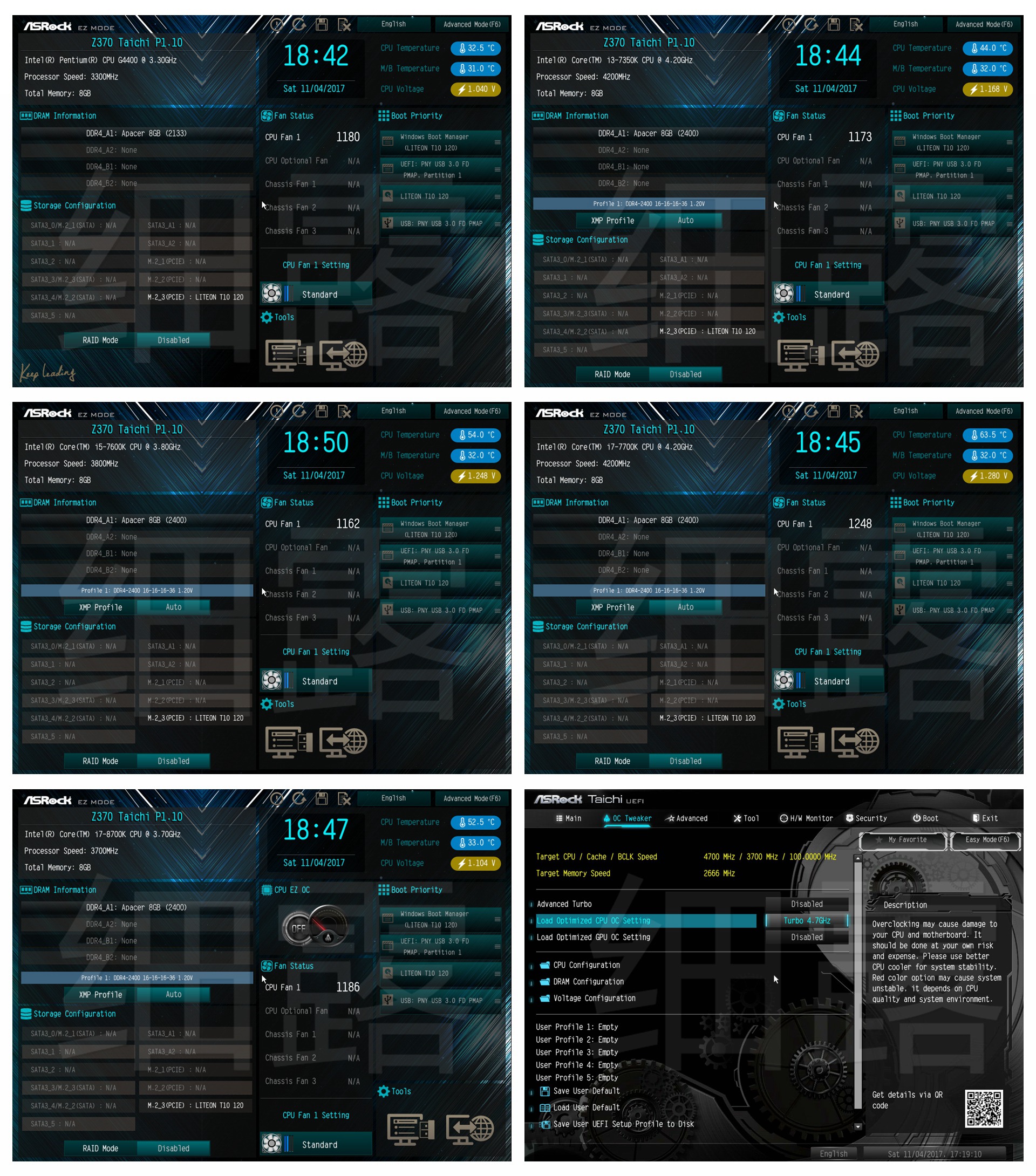 После модификации прошивок UEFI системные платы ASUS Prime Z370-A, MSI Z370-A Pro, MSI Z370 Gaming M5, MSI Z370 Gaming Plus, MSI Z370 Gaming Pro Carbon AC, Gigabyte Z370 Aorus Gaming 7, Gigabyte Z370 HD3, ASRock Z370 Taichi и Colorful iGame Z370 Vulcan заработали с официально неподдерживаемыми процессорами семейств Intel Skylake-S и Kaby Lake-S.