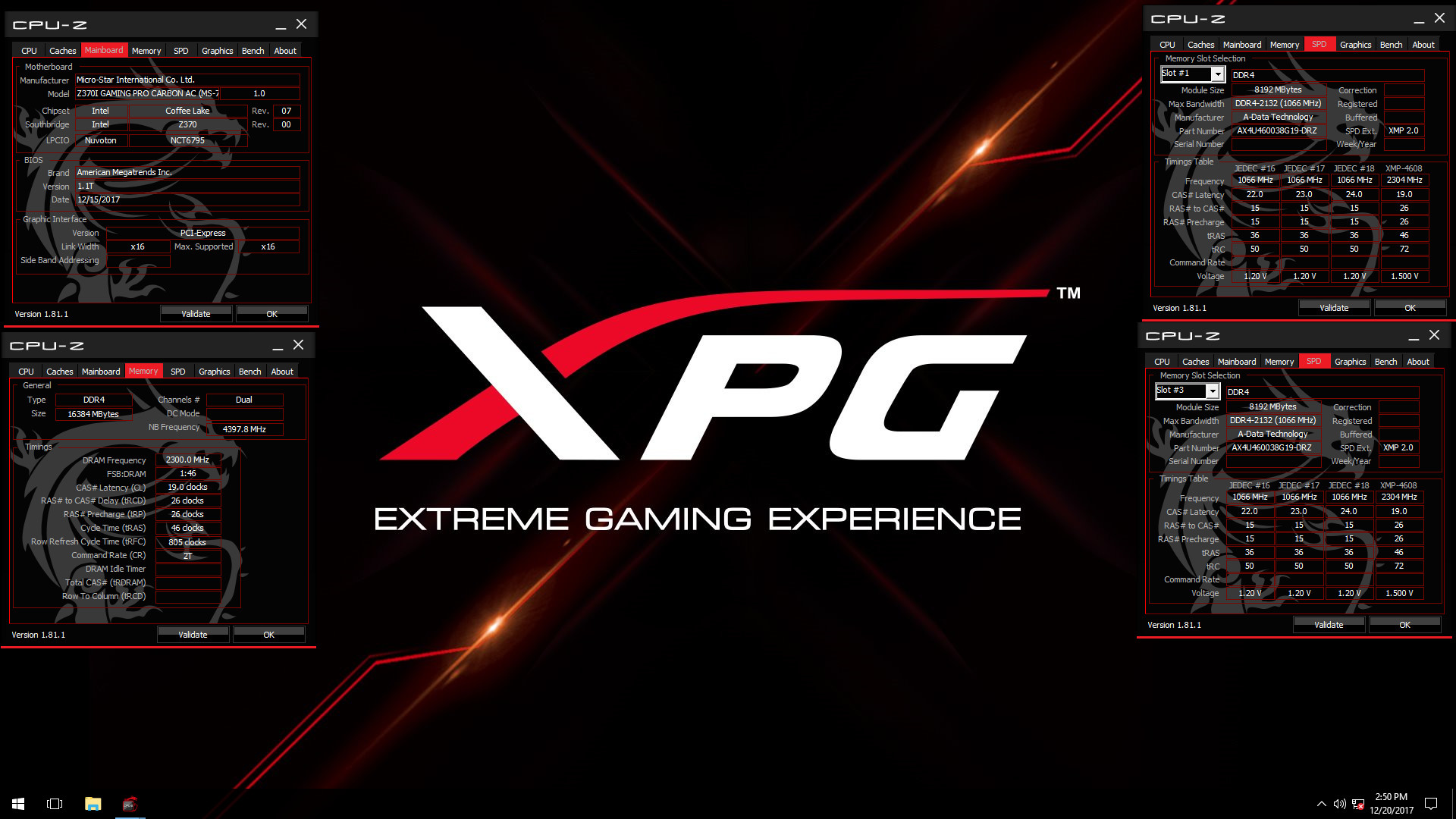 Планки памяти Adata XPG Z1 DDR4-4600 характеризуются формулой задержек 19-26-26-46, поддерживают оверклокерские профили Intel XMP 2.0 и работают при напряжении 1,5 В. Раскрыть весь потенциал нового комплекта ОЗУ, как отмечает производитель, смогут материнские платы на базе чипсетов Intel Z370 и X299. В частности, на CES 2018 можно будет ознакомиться с работой данного набора в составе системы на базе платы MSI Z370I Gaming Pro Carbon AC.